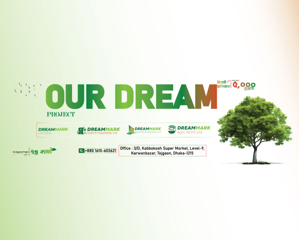 ড্রিম মার্ক গ্রুপ বাংলাদেশের একটি দ্রুত বর্ধনশীল বহুমুখী ব্যবসায়িক প্রতিষ্ঠান। আমরা বিশ্বাস করি, পরিকল্পিত উদ্যোগ এবং স্বচ্ছ বিনিয়োগের মাধ্যমেই টেকসই ভবিষ্যৎ গড়া সম্ভব। আবাসন, পর্যটন এবং আধুনিক কৃষি—এই তিনটি প্রধান খাতকে এক সুতোয় গেঁথে আমরা এমন এক জীবনধারা তৈরি করছি যেখানে আধুনিক নাগরিক সুবিধা থাকবে প্রকৃতির খুব কাছাকাছি। আমাদের লক্ষ্য কেবল ব্যবসা নয়, বরং বিশ্বাস ও আস্থার একটি শক্তিশালী করপোরেট ব্র্যান্ড তৈরি করা।